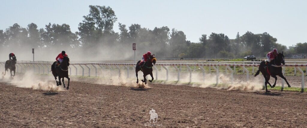 Cuando pasaron por los mil, Pablo Moreyra movió un poco a Chimi Melo y este emparejó la línea del puntero, sin que se produjeran cambios entres los de atrás. Ya en los inicios del codo el hijo de Decimelo (Equal Stripes) dominaba sin que su jinete se lo pida.